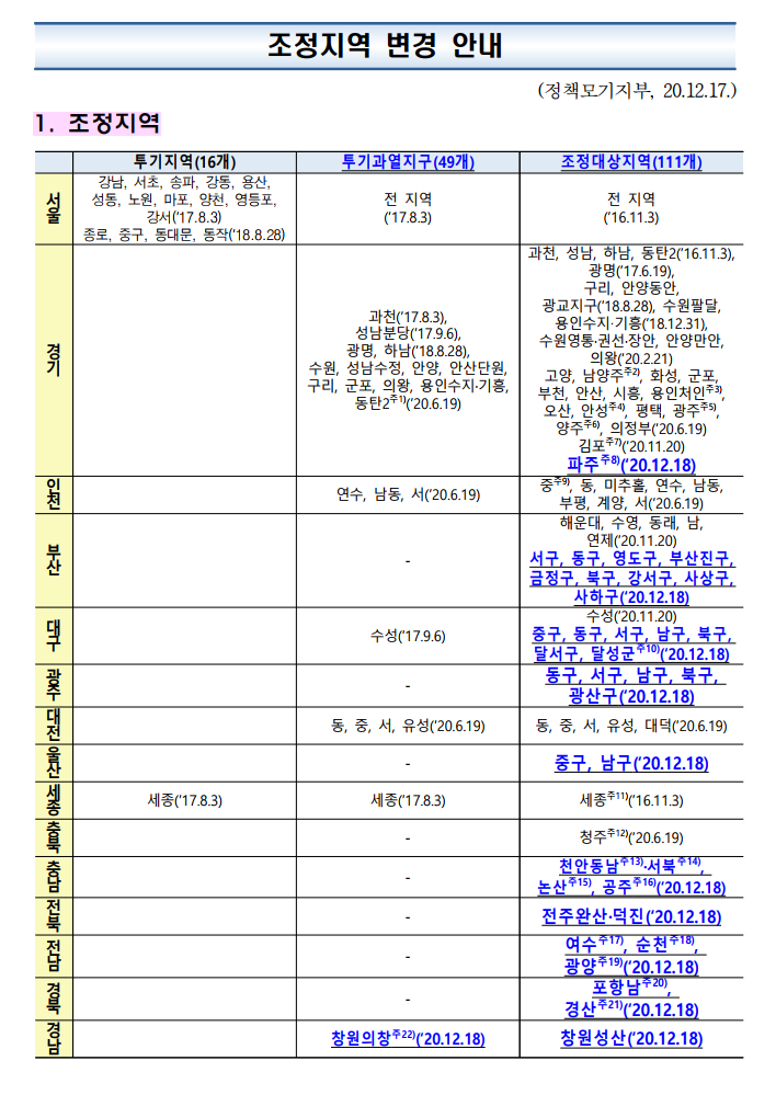 조정대상지역(투기 · 투기과열지역 포함)* |
