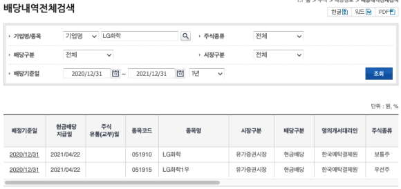 2021년 LG화학 배당정보