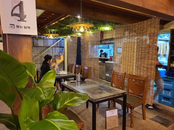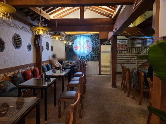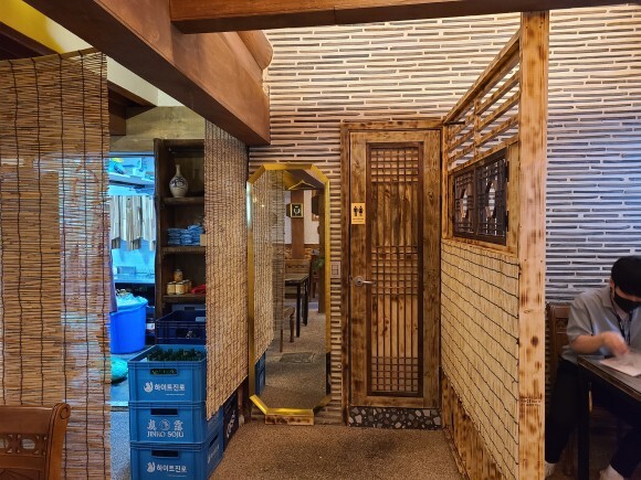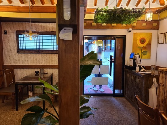 서까래? 인가? 하는 것이 지붕에 있는 걸로 보아 한옥을 개조한 건가? 하는 생각이 들었습니다.