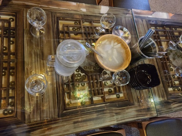 물과 와인잔을 같은 잔에 먹을 수 있더라고요.