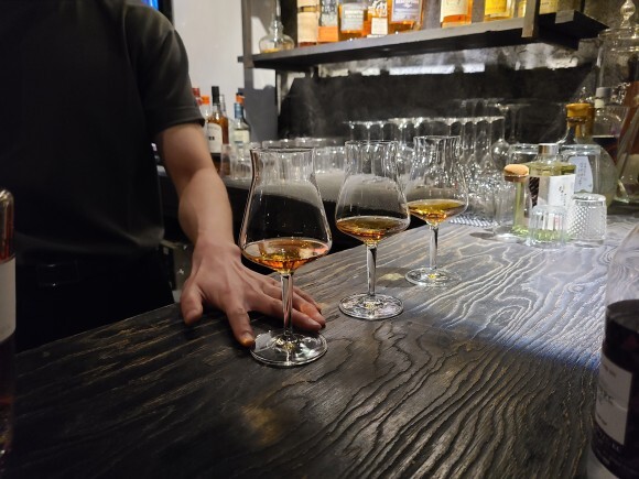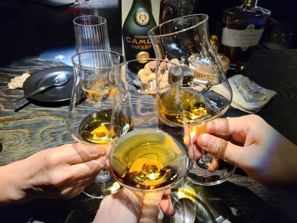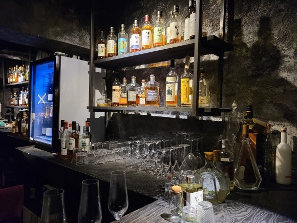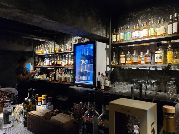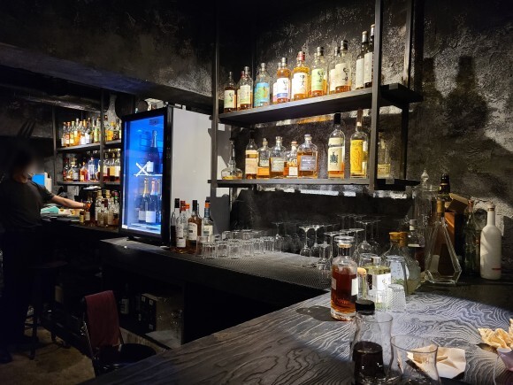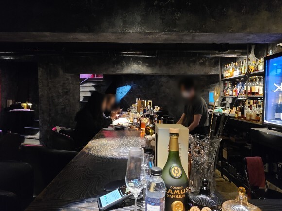 바 테이블에 앉아서 술도 찰칵찰칵.