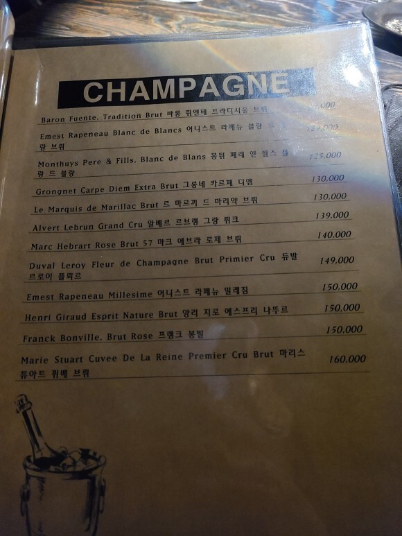 저희가 마신 샴페인은 '마리스 튜아트 꿰베 브뤼' 바틀로만 파네요 160,000원!