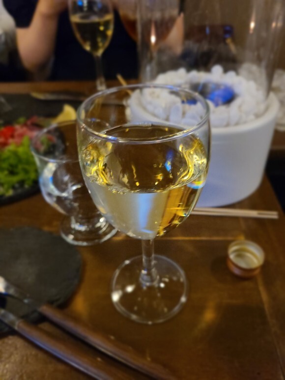 육회와 주문한 화이트 와인 :)
