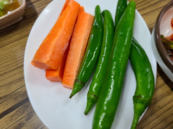 고추와 당근을 먹으며 잠시 기다리니 감자탕이 나왔습니다. :)