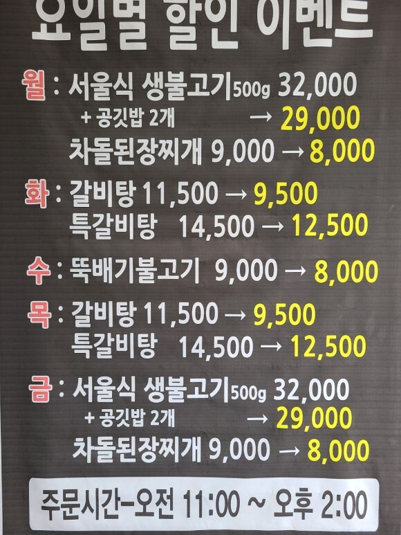 요일별로 할인하는 메뉴도 있었고,