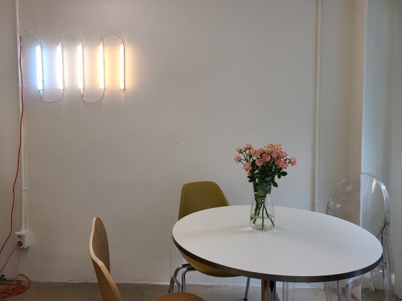 한쪽 원형 테이블과 꽃 :)
