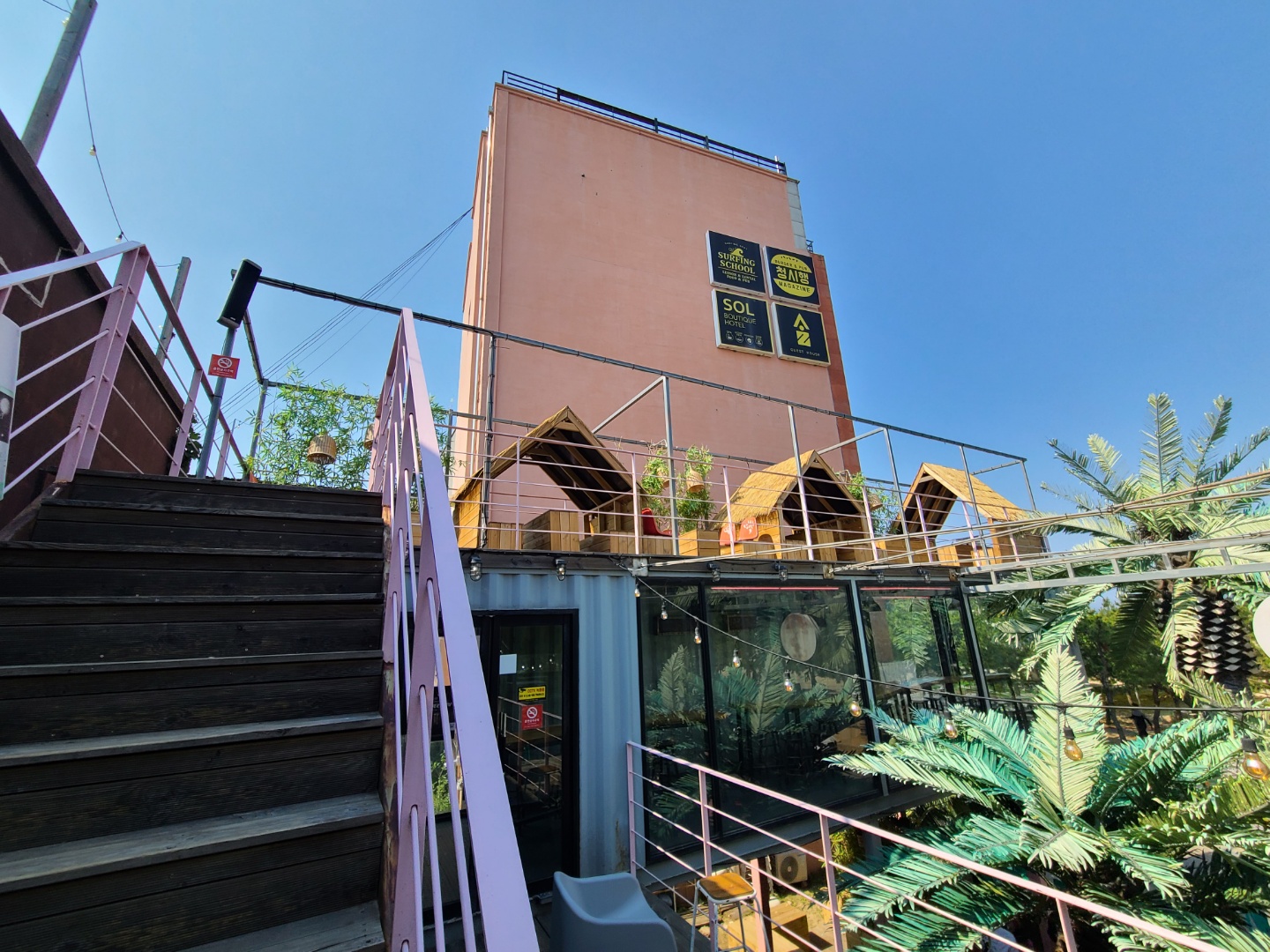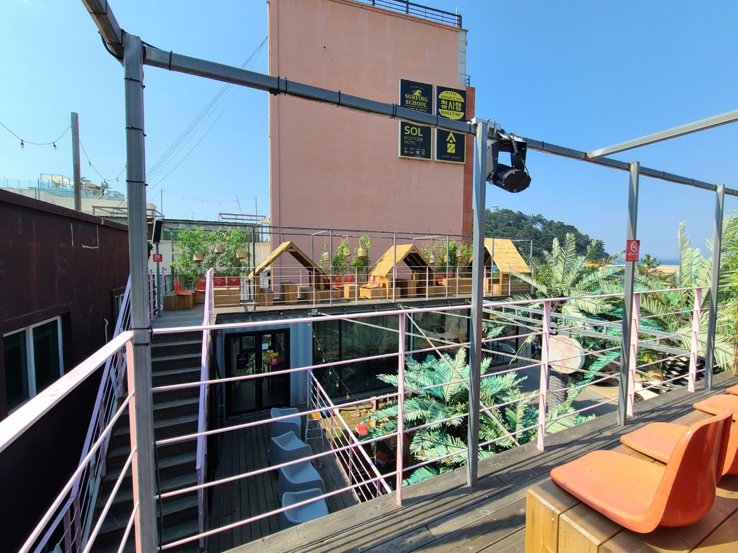 바닷가 바로 앞에 위치해 있는 좋은 접근성으로 서핑 후 휴식을 취하기에 너무 좋아보였어요.