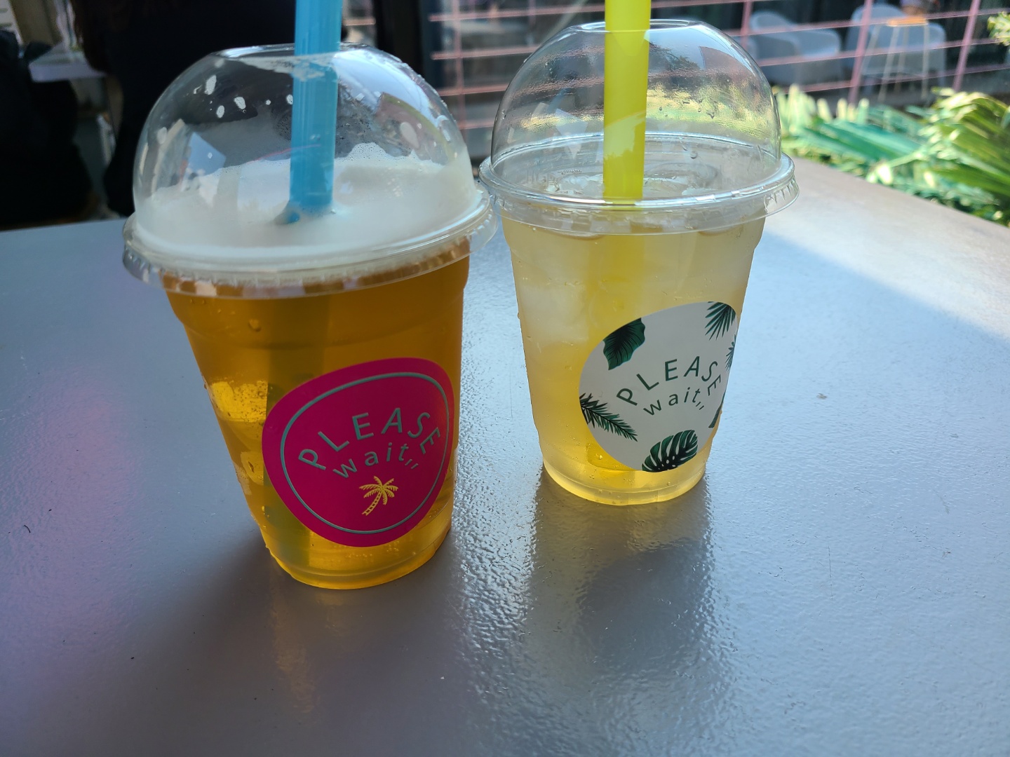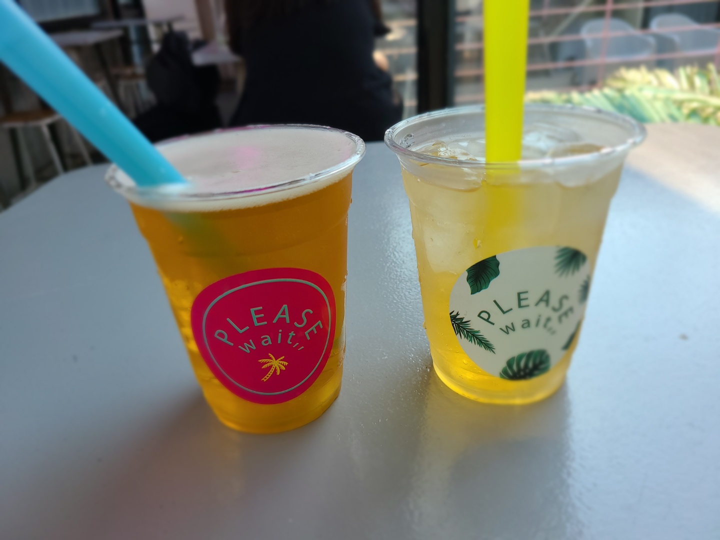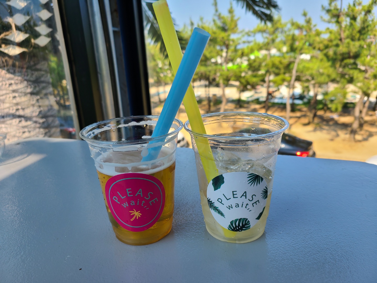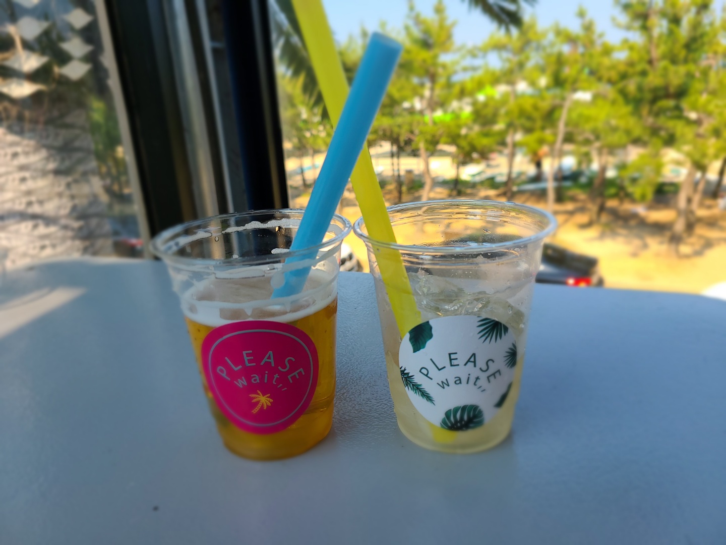 왼쪽 플리즈웨잇 카페 시그니쳐 메뉴 YY 에프 비어와 오른쪽 역시나 플리즈웨잇 카페 시그니쳐 메뉴 YY 하이볼 :)