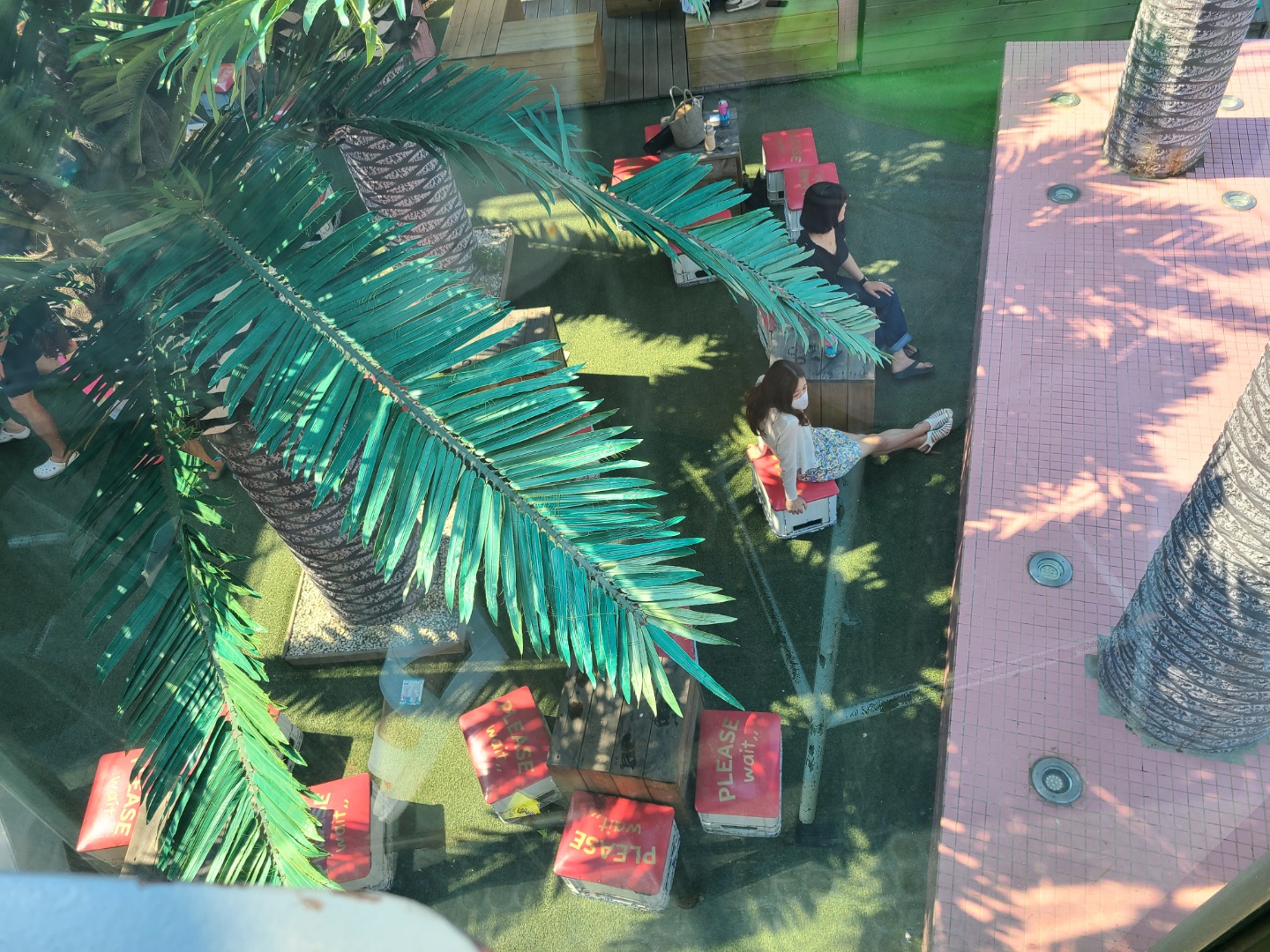 2층 실내에서 내려다본 아래 외부 정원 모습이에요 :)