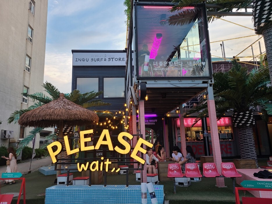 양양 서핑에서 패키지로 묵을 수 있는 숙소 바로 옆에 있던 양리단길 플리즈웨잇 카페 :)