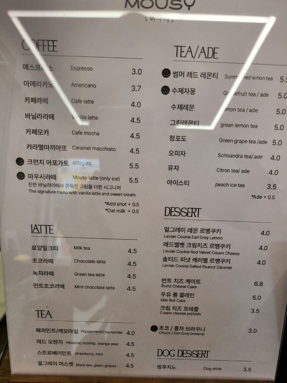 마우시 디저트 메뉴도 찍어볼게요. :)