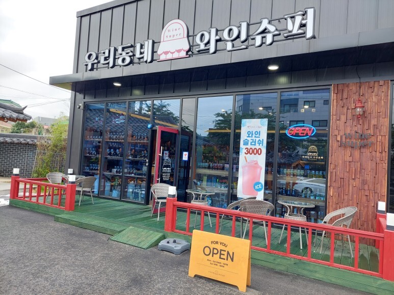 서산 와인 우리동네 와인슈퍼는 서산 시내에서 유동 인구가 많은 곳에 자리해 있는 것 같았어요. 앞에 널따란 공터에 주차장이 마련되어 있어 차 끌고 방문하여 서산 와인 사가기에 너무 좋아 보였어요!