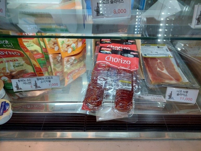 와..! 냉장고에 각종 와인 안주들도 많네요 :)