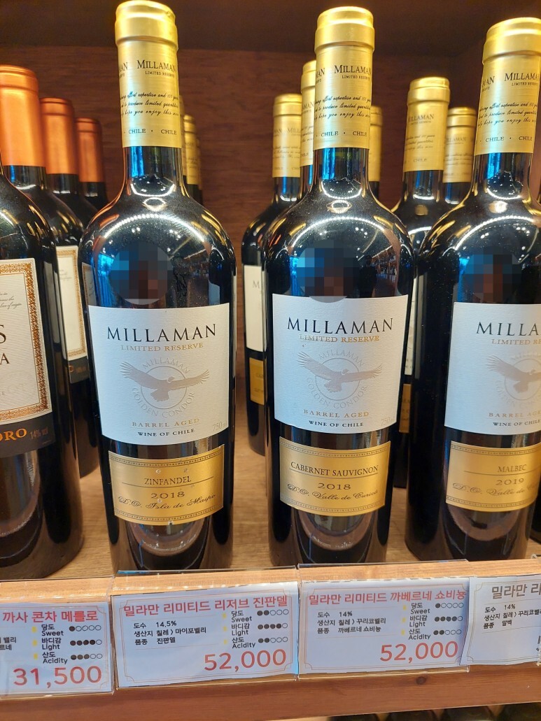 저는 사장님의 추천을 받고 밀리만 리미티드 리저브 진판델로 구매했어요. :)
