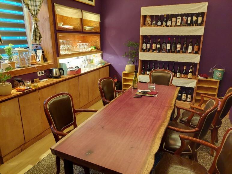 와인매장 뒷쪽에는 6명 이상이 와인을 시음할 수 있는 공간도 마련되어 있었는데, 미리 예약을 하면 얼마든지 이용할 수 있었고, 매장 내 음식 조리는 불가능하기에 배달음식이나 미리 준비해온 음식만 안주로 가능하다고 하였습니다.