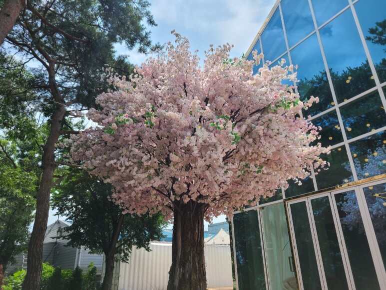 벚꽃 가지를 가지마다 하나하나 붙여 놓았더라고요.