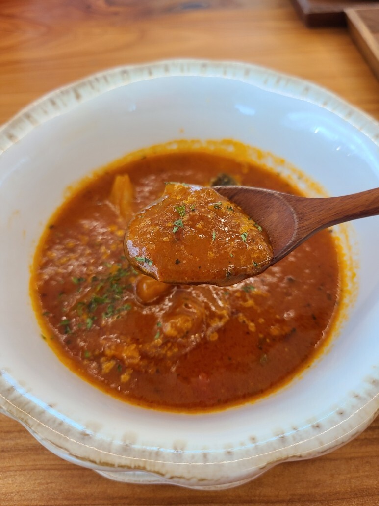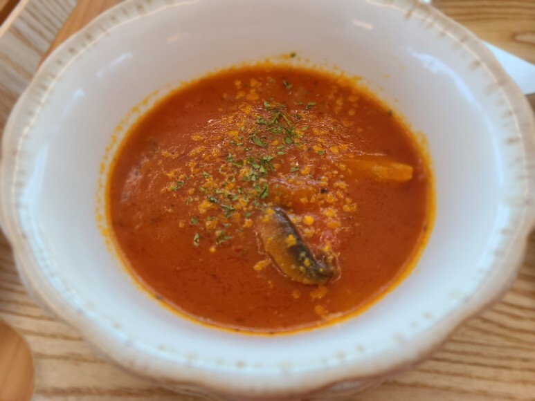 브런치와 셋트로 나온 토마토 수프..