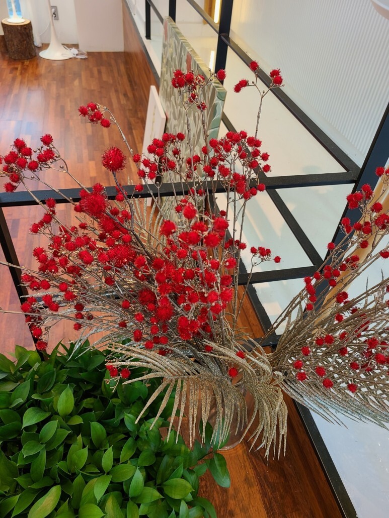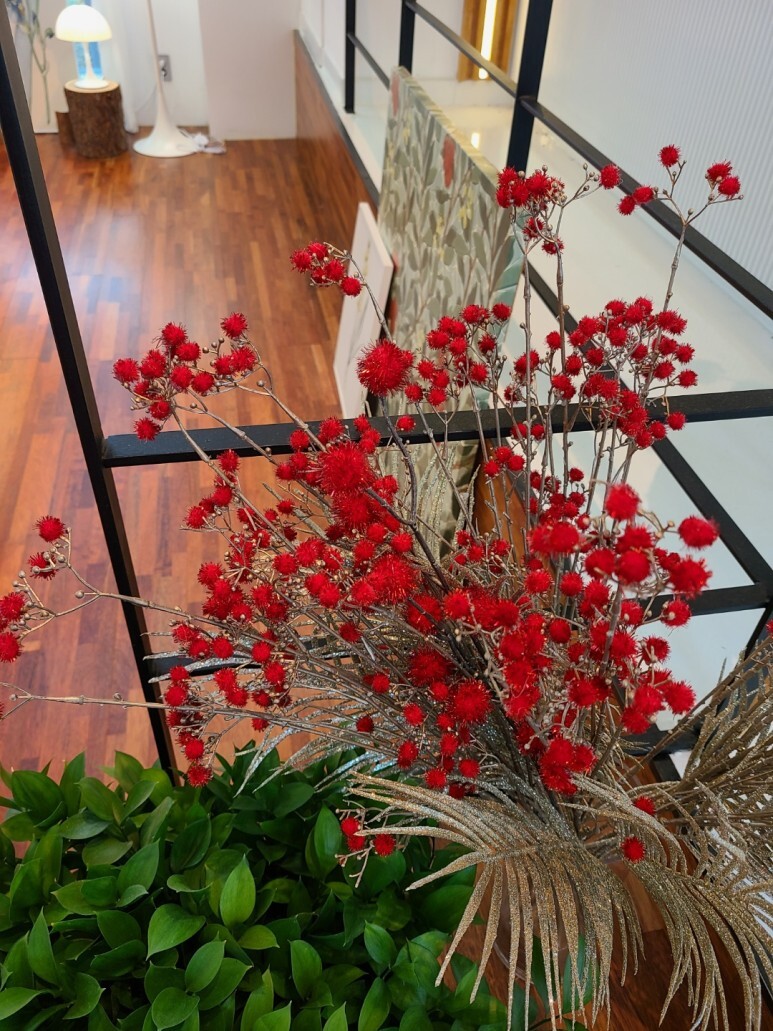 이 빨간색 조화 진짜 이뻤어요. 제가 반짝거리는 걸 좋아하는데, 아주 반짝반짝. :)