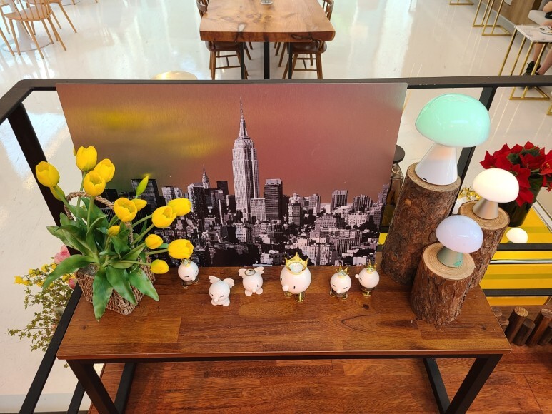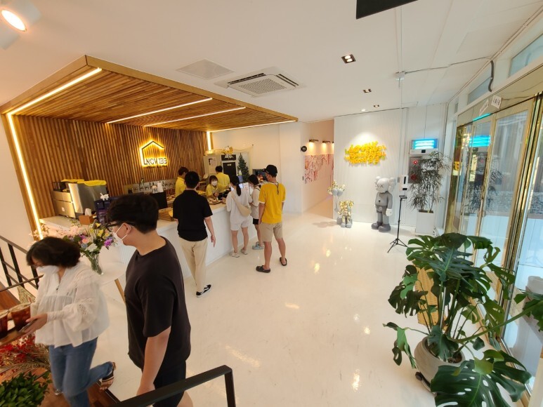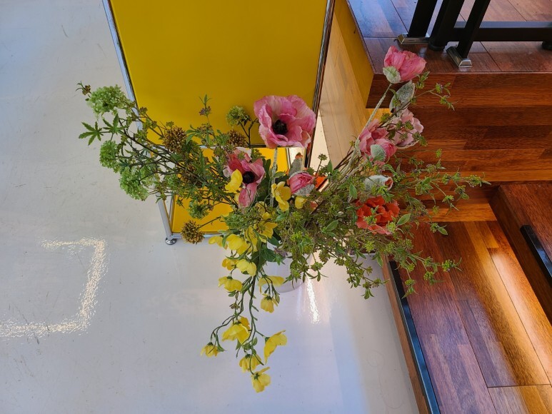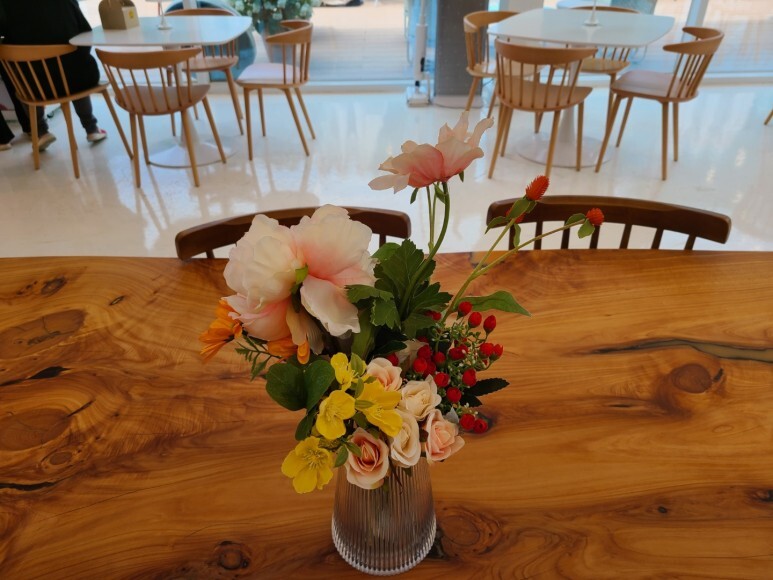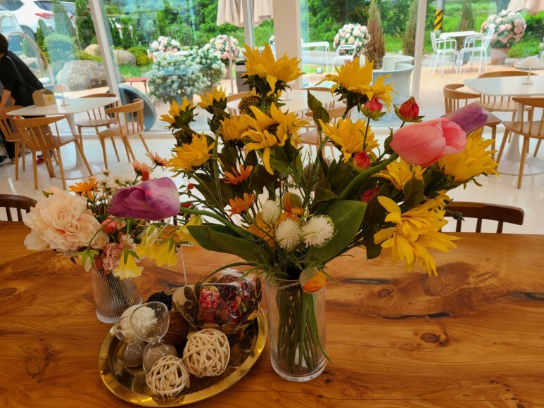 1층 메인 탁자 위 꽃들도 이쁘니까 놓칠 수 없죠. :)