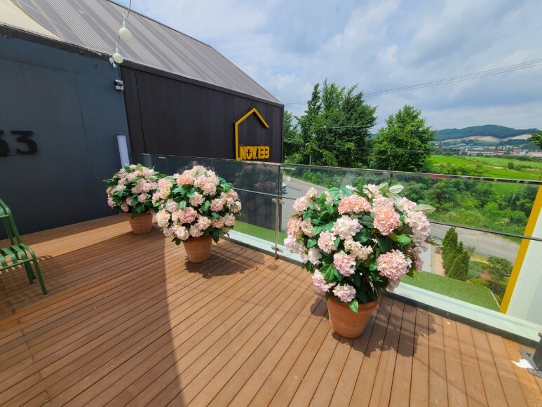 야외 테라스 꽃이.. 조화인 줄 알았는데 진짜 수국이에요.