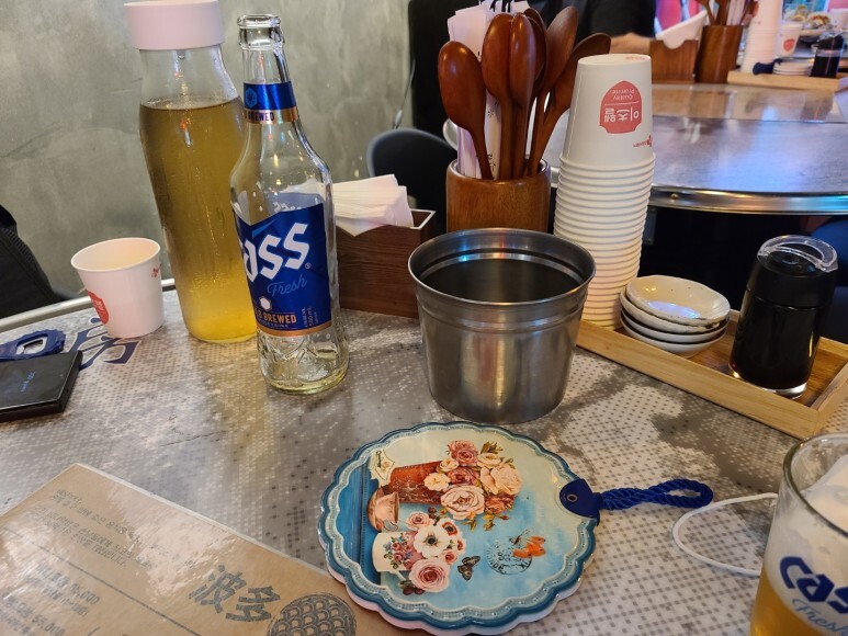 셋팅된 자리. 일행은 더운 날을 이기지 못하고 혼자 맥주 한 병을 비웠더군요!!