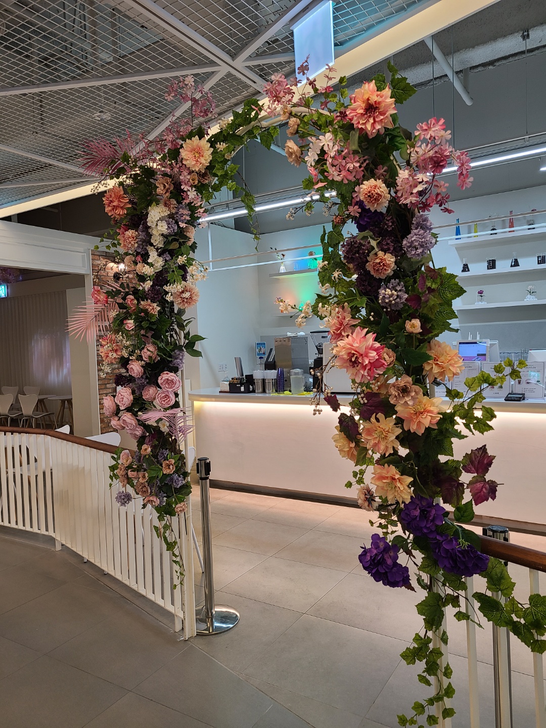 아치형 꽃으로 둘러쌓인 카페 입구예요. 너무 이쁘죠? :)