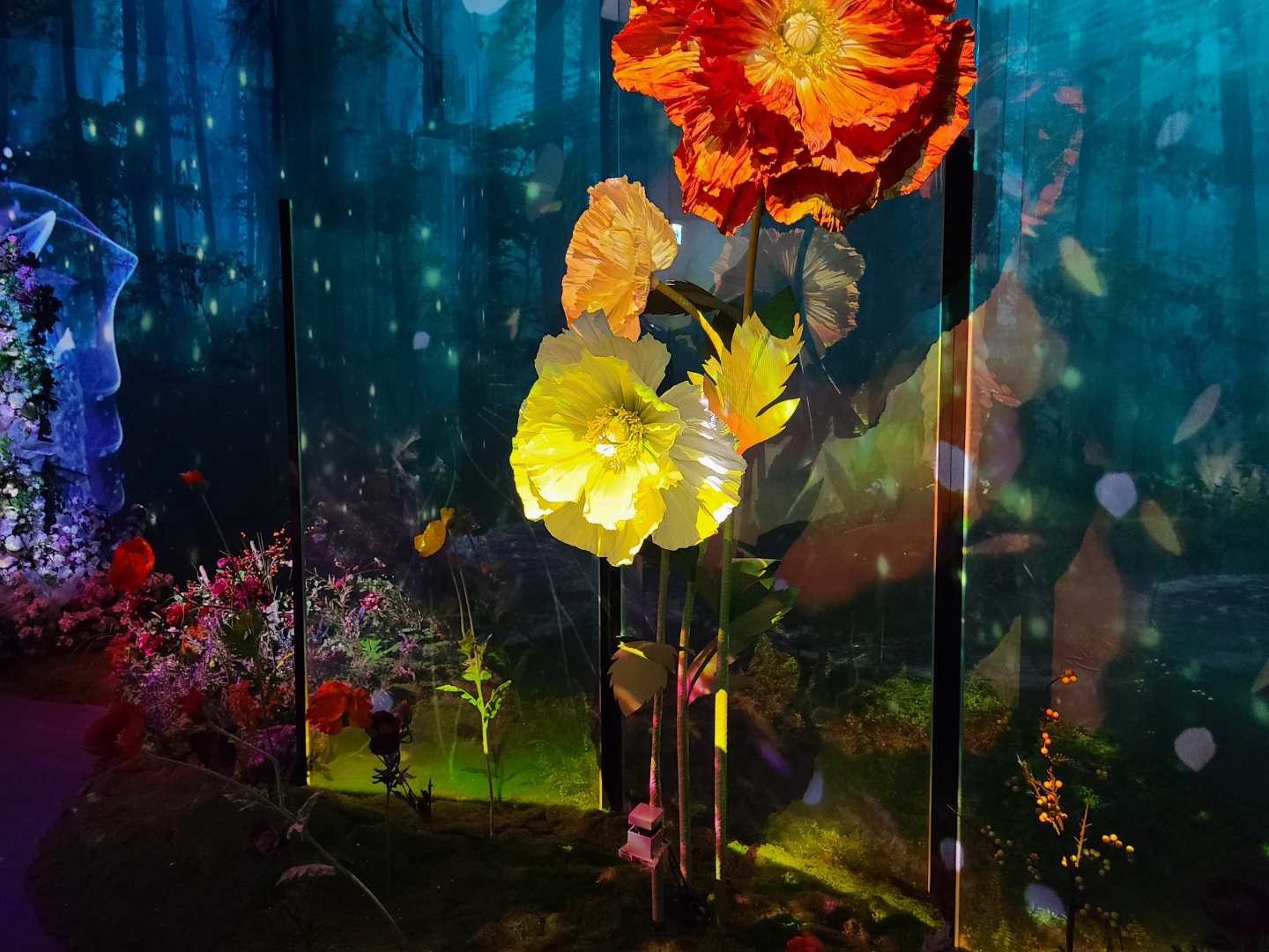 전시의 이야기가 끝나면서 우리의 이야기는 계속된다는 것을 빛과 플라워 아트로 표현한 공간