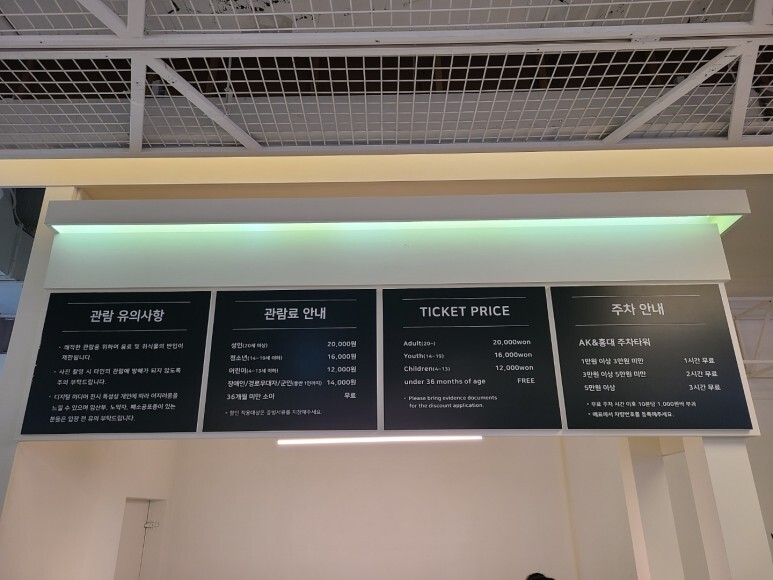 성인 20,000원, 청소년 16,000원, 어린이 12,000원 이였습니다.