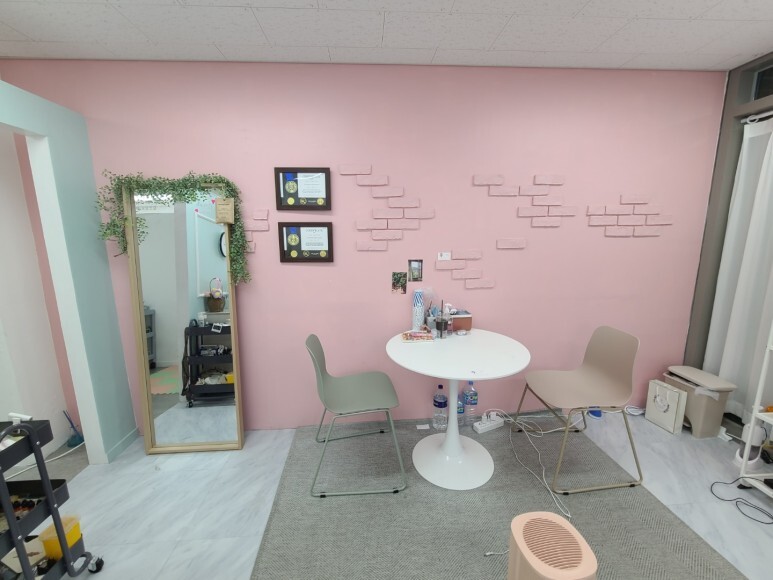 샵은 핑크와 민트로 꾸며져 있었고, 딱 예약제로 운영하는 것처럼 1인만 받기에 적당해 보였어요.