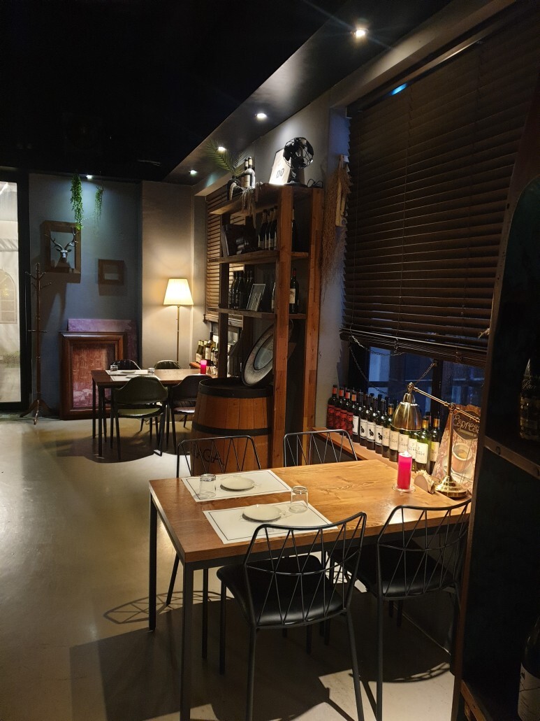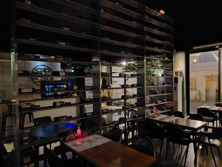 전체적인 가게 분위기 입니다. 분위기 좋죠. 가운데 와인랙으로 이루어진 파티션도 분위기 좋네요. :)