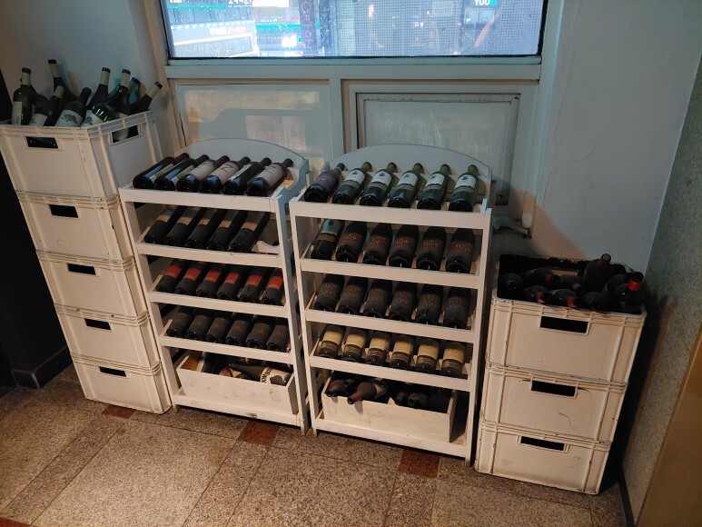 입구엔 다 마신 와인병들이 진열되어 있고요. :)
