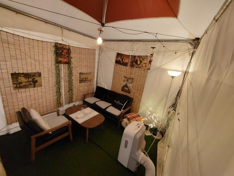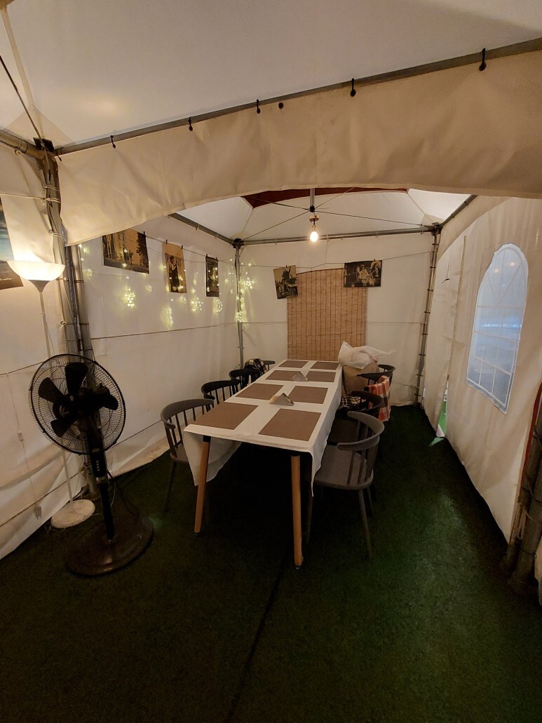 몽골 텐트 안쪽에 위치한 좌석도 아늑하게 캠핑 온 느낌으로 즐기기에 좋아 보이죠. :)