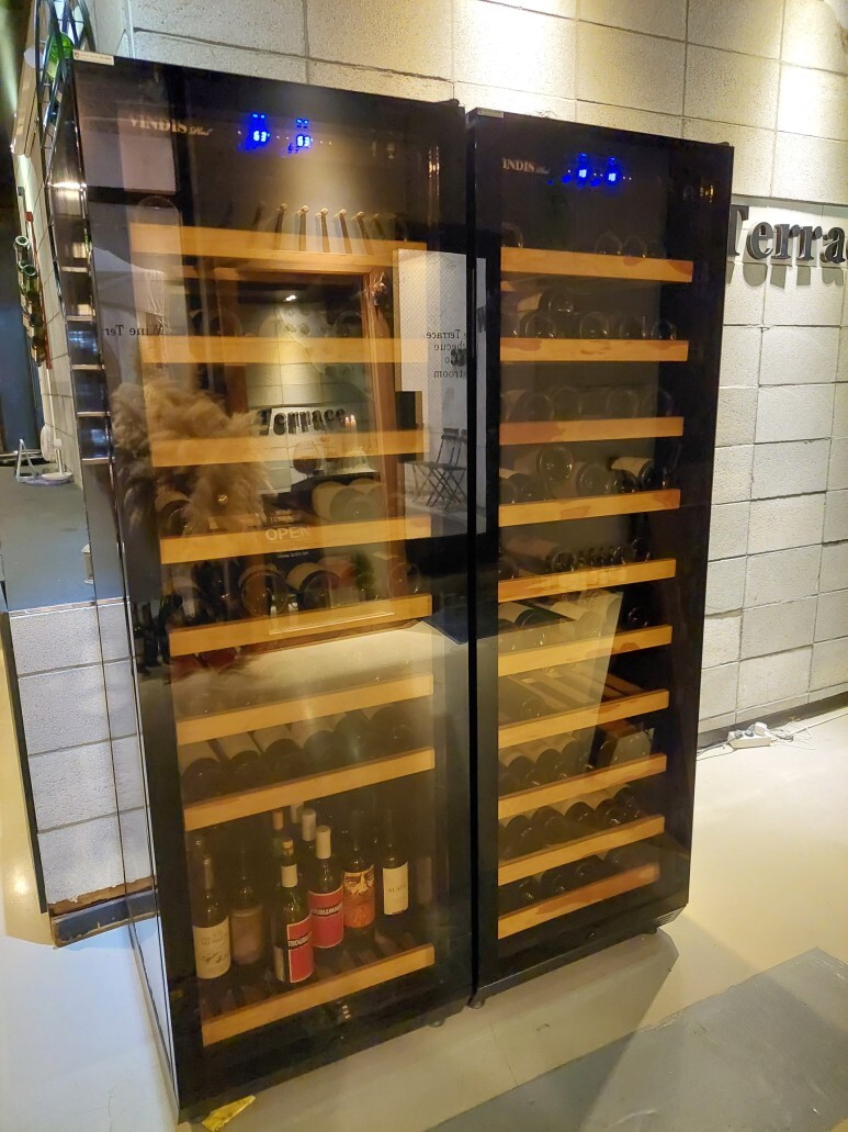 바로 옆엔 대형 와인 셀러가 있구요.