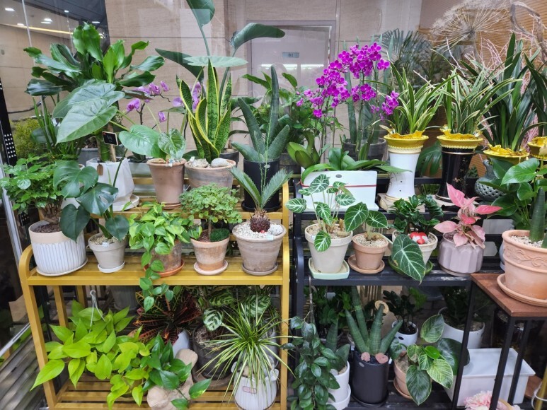 진열되어 있는 식물과 꽃들 너무 이쁘죠?