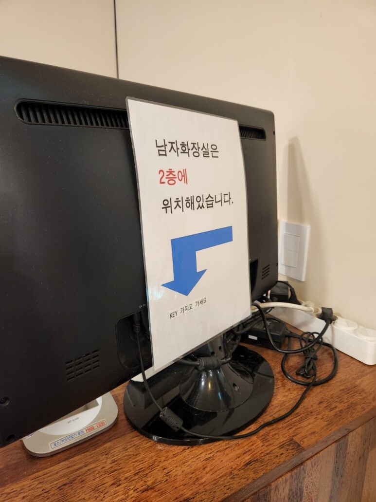 남자 화장실은 2층에 있대요!