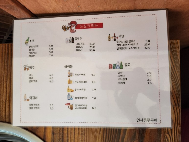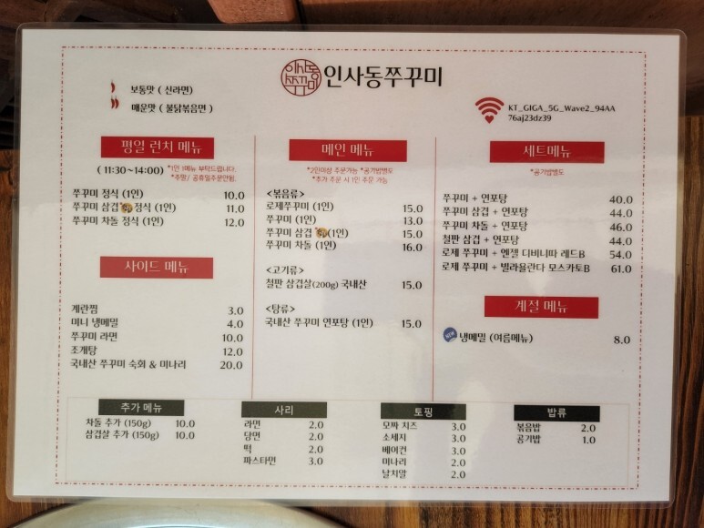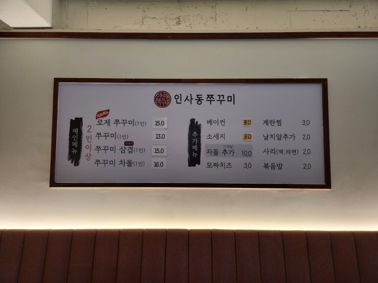 인사동쭈꾸미 벽에 걸린 메뉴판 보고 가실게요.