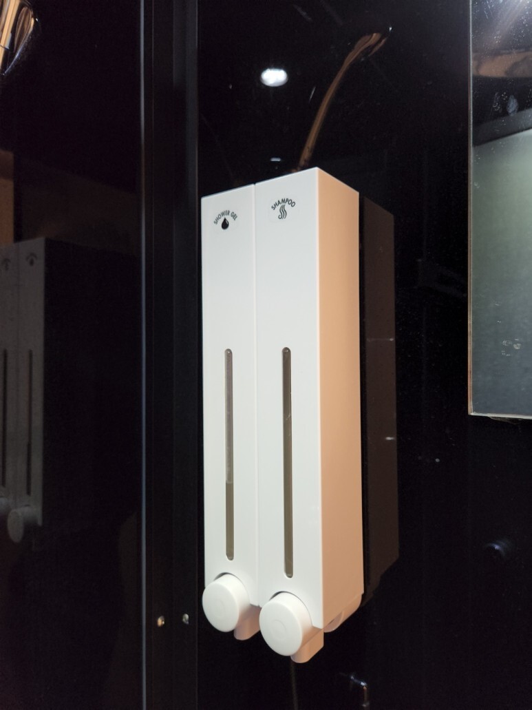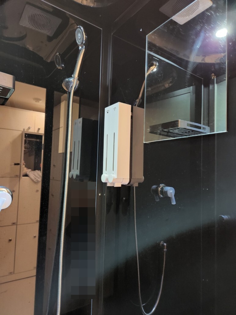 바로 오른쪽 벽면에 바디워시와 샴푸가 보이죠?