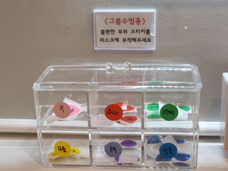 그룹 수업용 불편한 부위에 붙일 수 있는 스티커도 있네요.