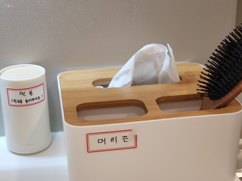 샤워실에는 머리끈도 구비되어 있었고요.