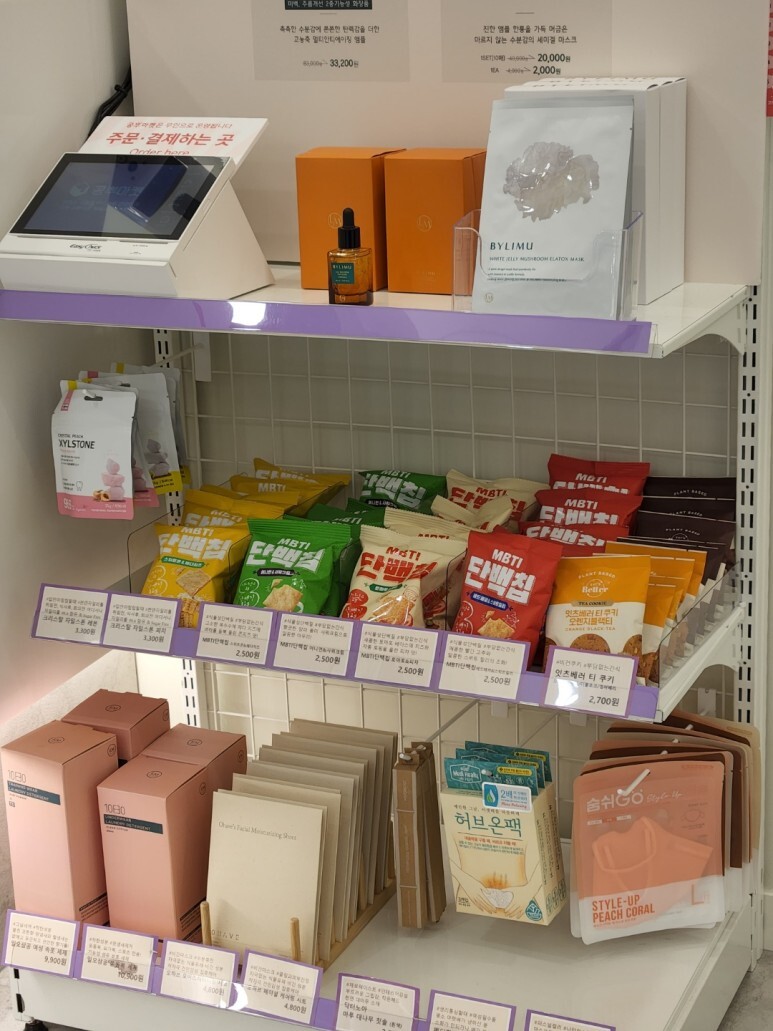 카운터 한 켠에는 간식들이 있었어요.