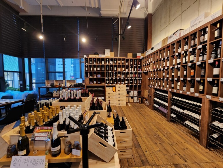 들어가자마자 보이는 넓은 매장에 와인이 가득 진열되어 있어요.