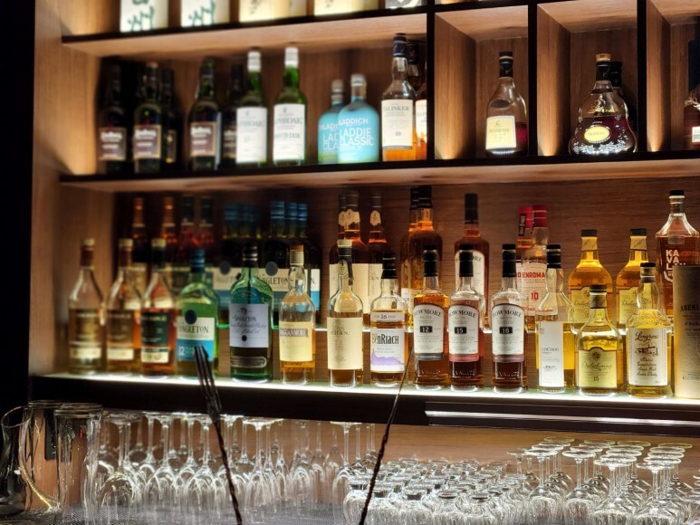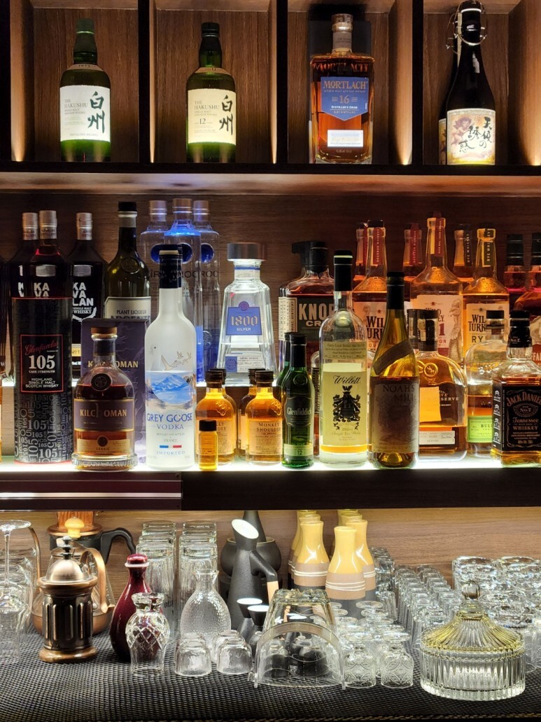벽면 가득 진열되어 있는 위스키, 데낄라 등 주류들 :)