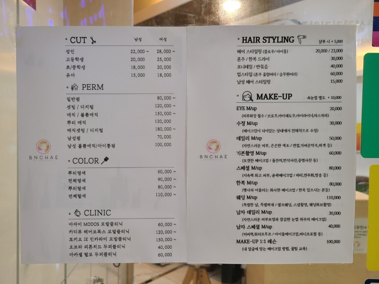 컷 가격과 펌 가격 염색 가격 등..