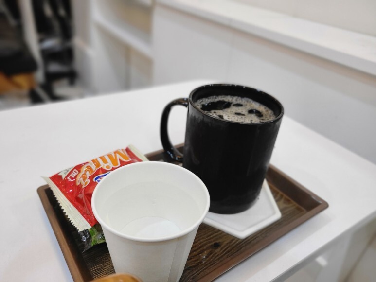 과자 먹고 커피 먹으면서 기다렸습니당