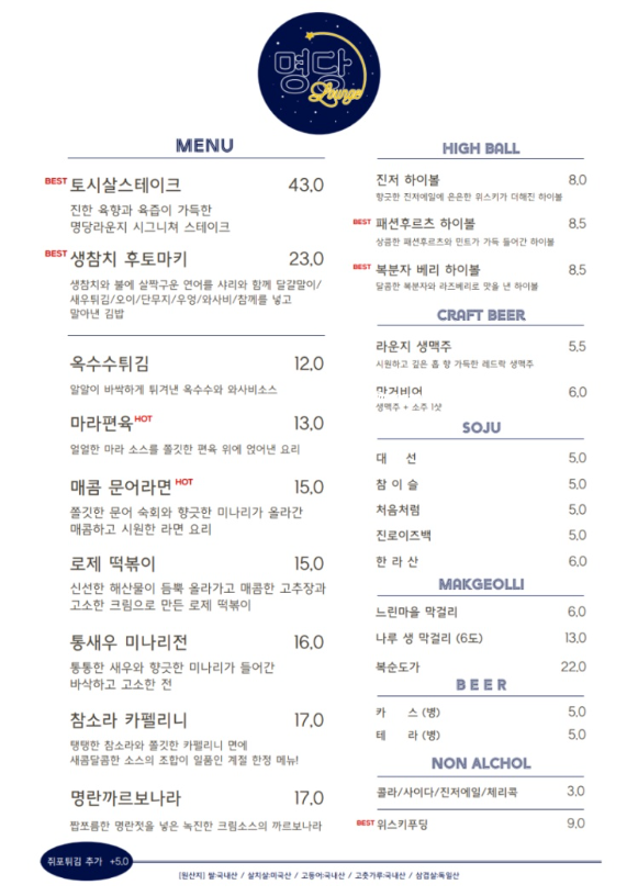 여러분을 위해 명당 라운지 메뉴판 보여드릴게용! :)
