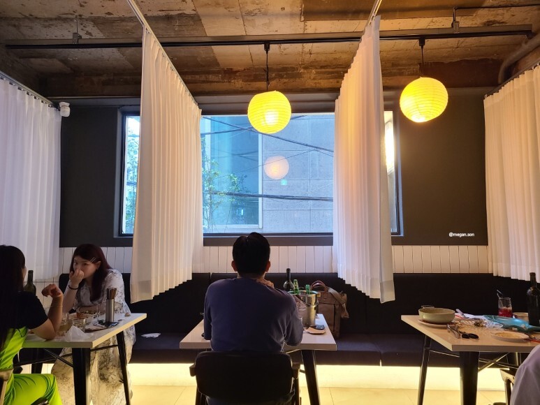 저기 커튼으로 가려진 둘만의 좌석은 조용할 것 같아 보였어요. :)