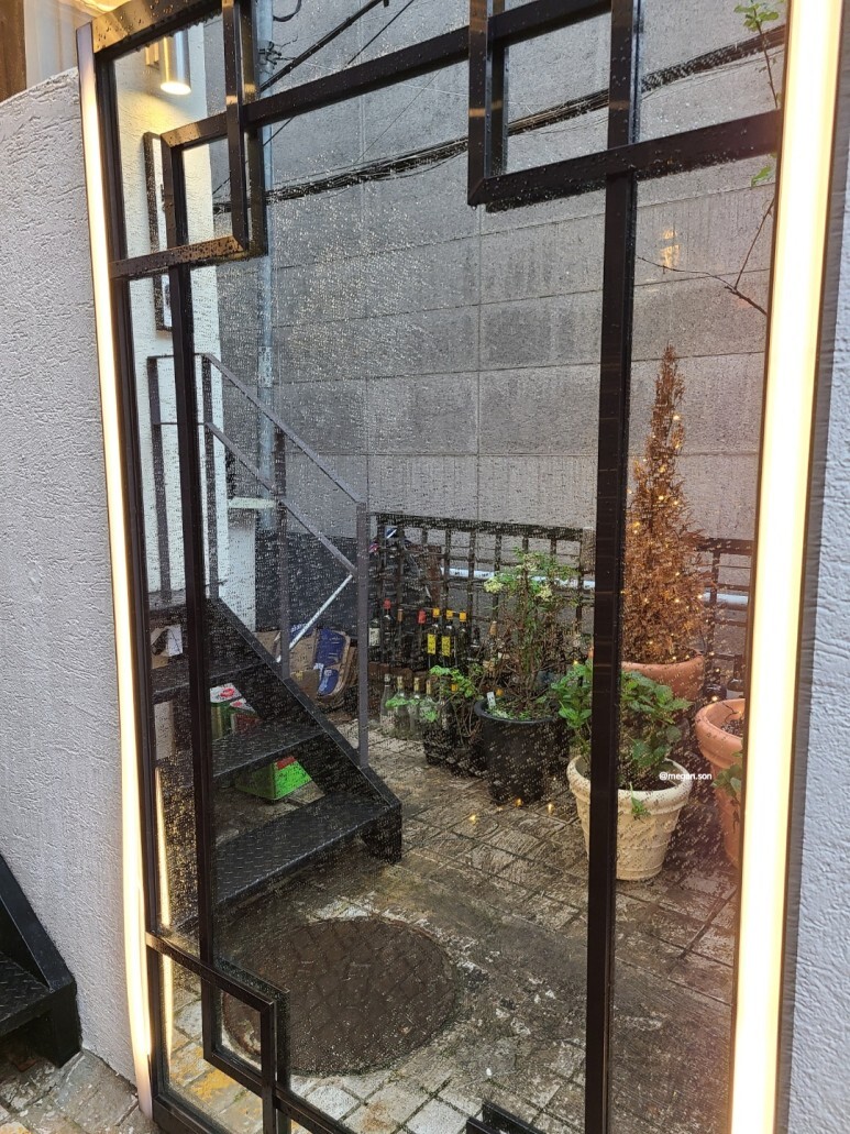 비가 많이 오는 날이여서 인지 거울에 물방울이 많이 묻어 있었어요. :)