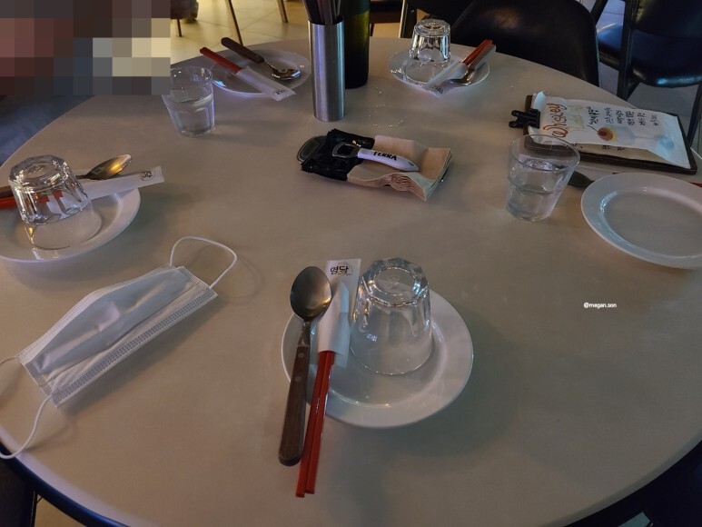 아무튼 우리는 6인 테이블에 앉았습니다. 원형 테이블이였어요. 테이블이 작아보이는데 생각보다 여유로웠어요.