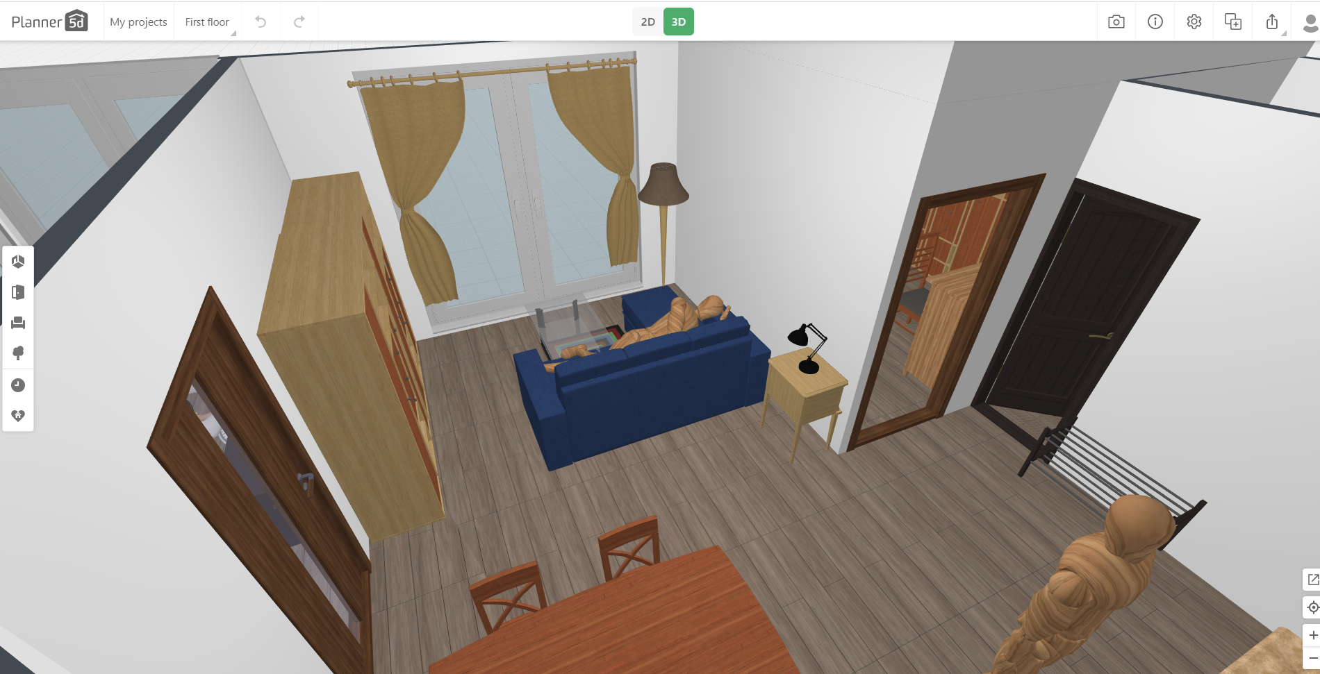 아래 planner5D를 사용한 가상 인테리어를 첨부 하겠다.
