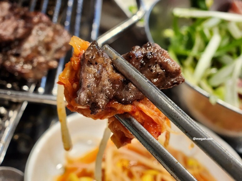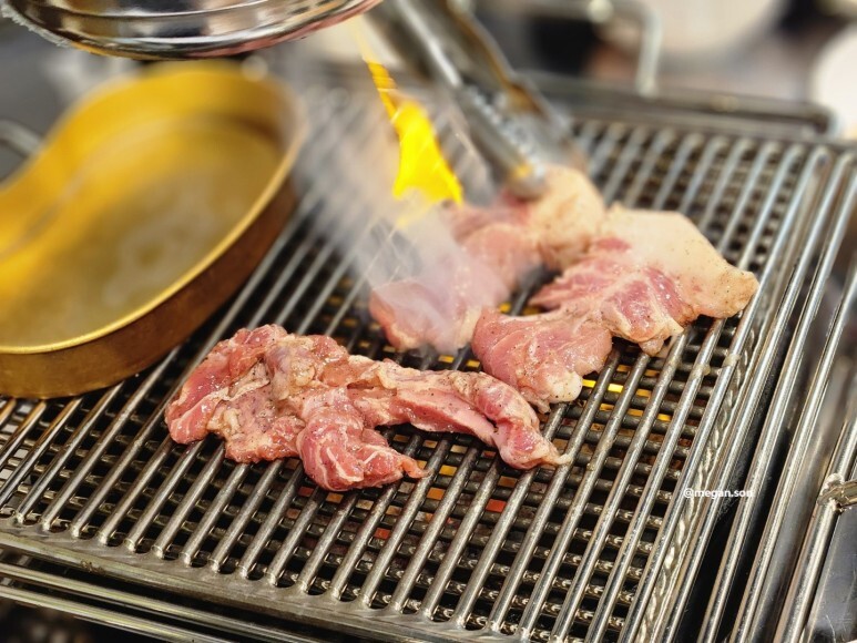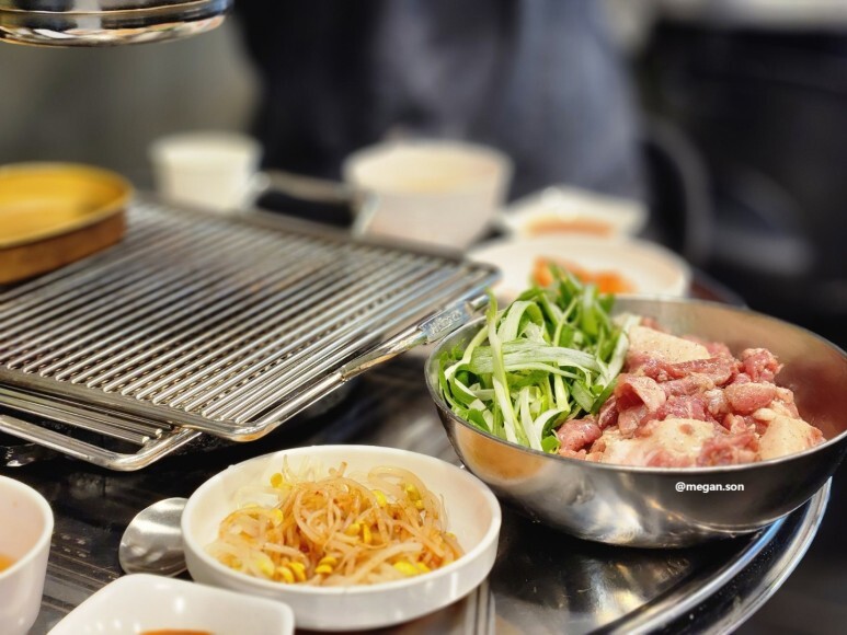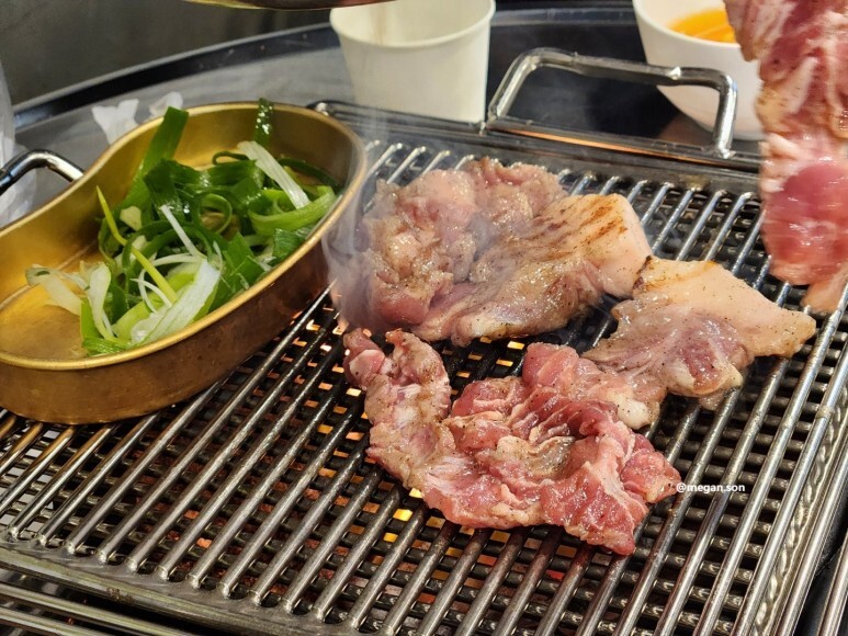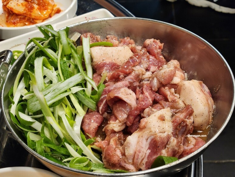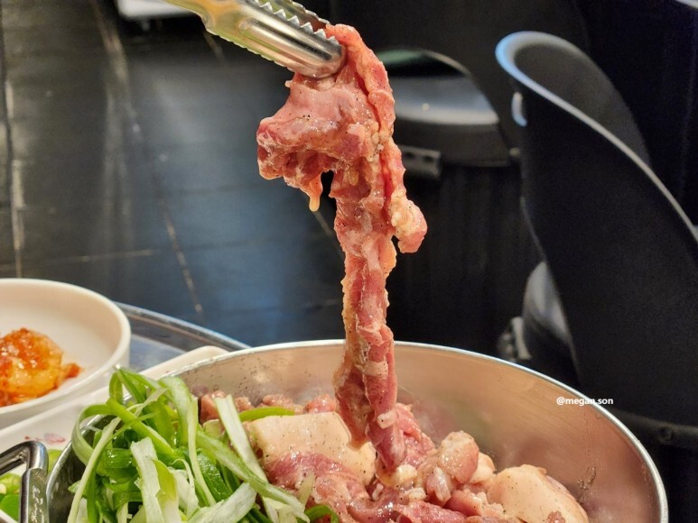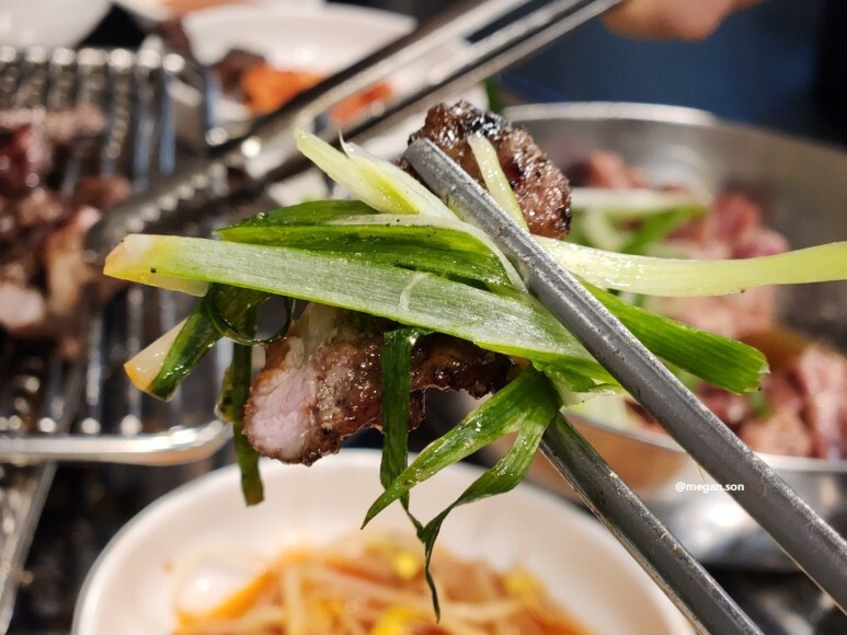 신촌 고기집 장군집의 뒷고기는 양념된 고기였어요.